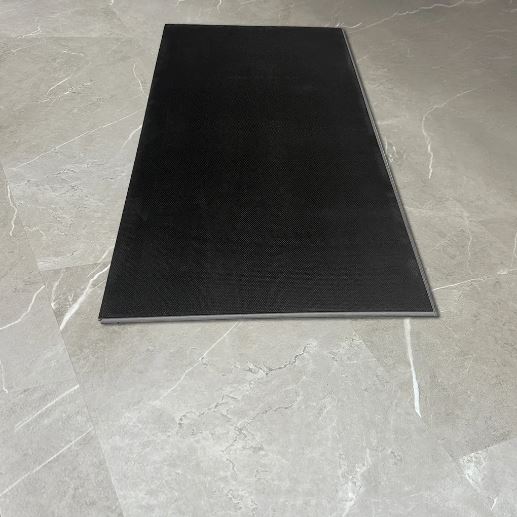 SPC: Composite 100% rígido. Incluye polvo de piedra, resinas y aditivos.